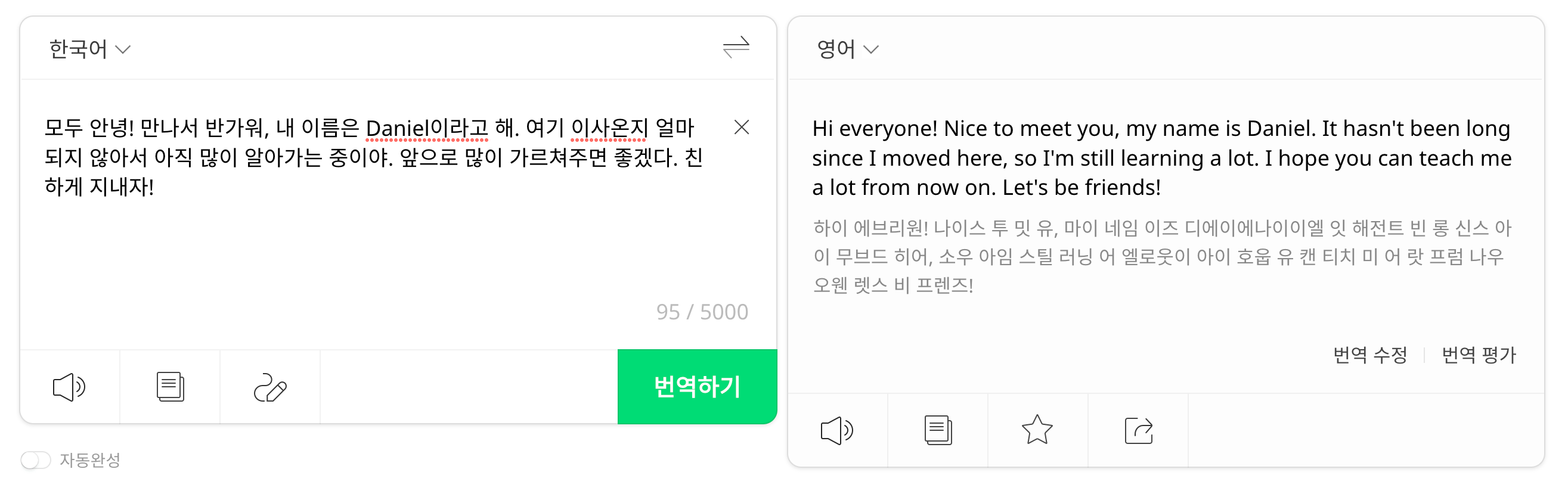 1. 내가 말하고 싶은 말을 파파고로 돌린다.