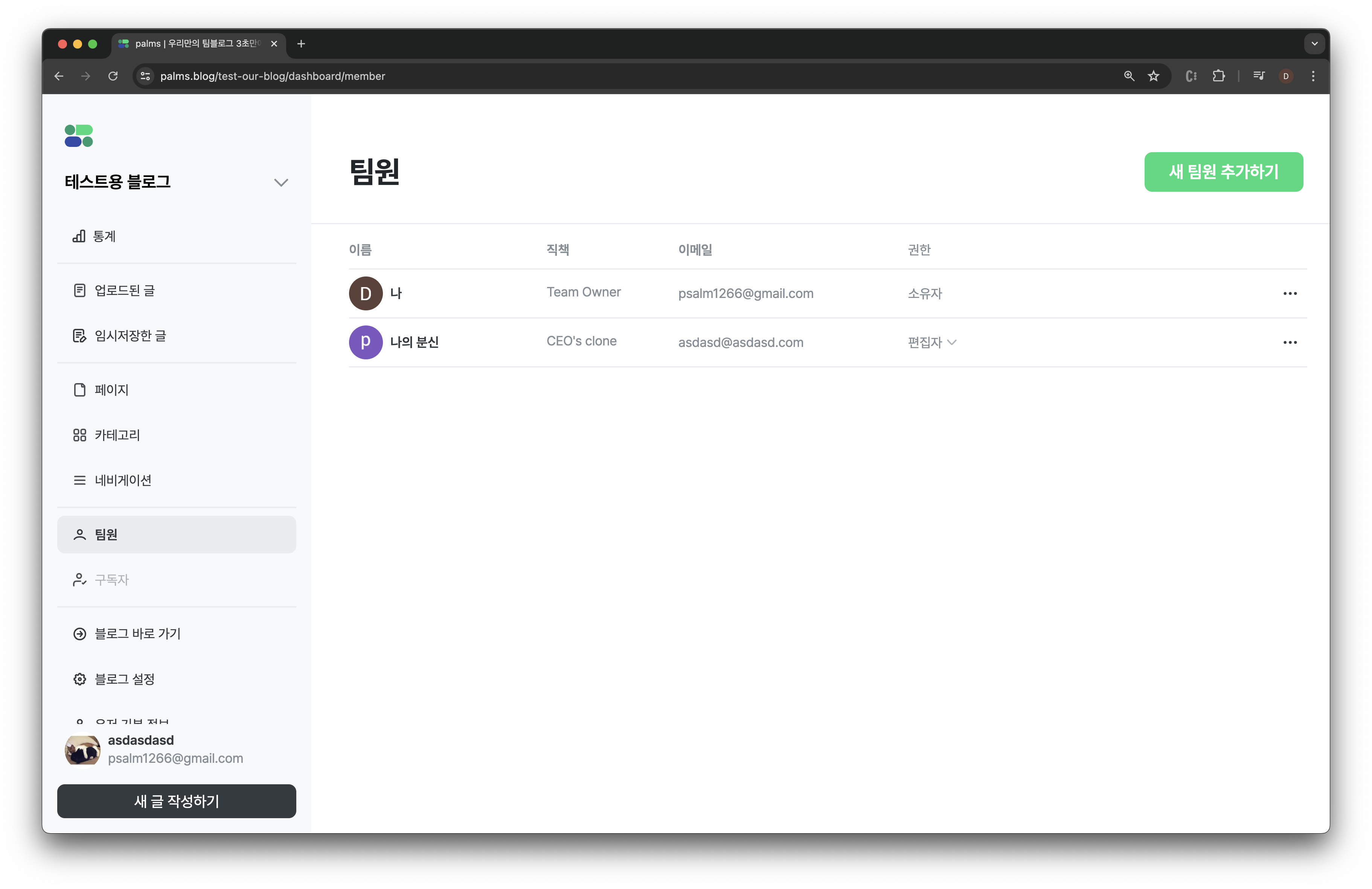palms는 블로그로서 갖추어야 하는 구색을 모두 갖추고 있으며, 팀원들을 초대해서 같이 쓸 수 있다는 특장점을 갖고 있다.